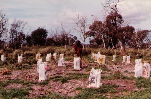 Sowing new around at Wyambi. Note - trees left for shelter.