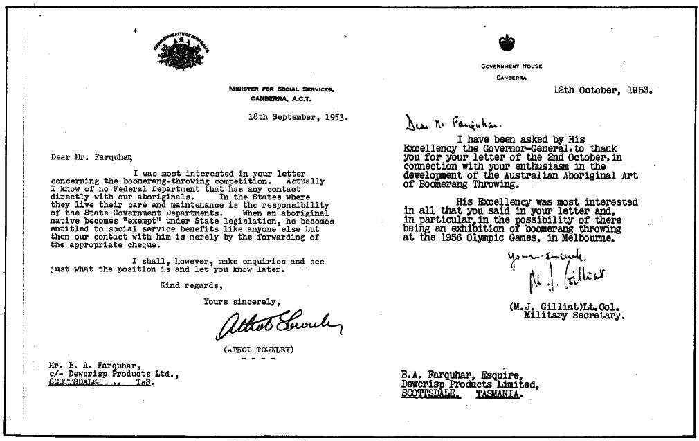 In the letters dated 1953 attached, note the complete lack of Commonwealth contact with Aborigines!