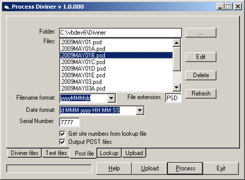 Each time is used a new post file will be created with a name based on the date e.g. 2009May02.PST