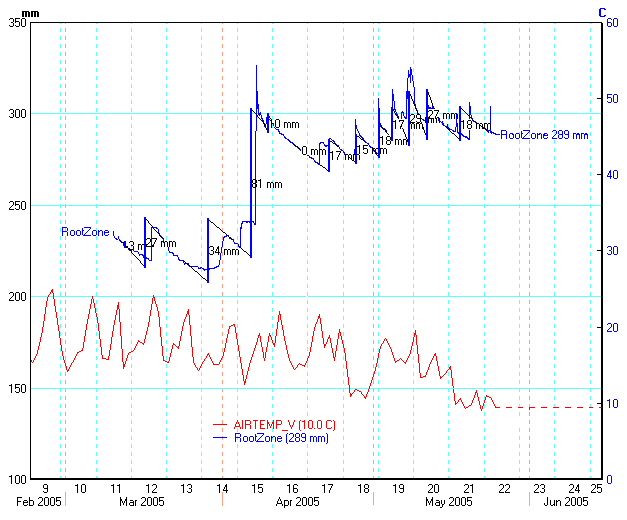 Total water in root zone, with...