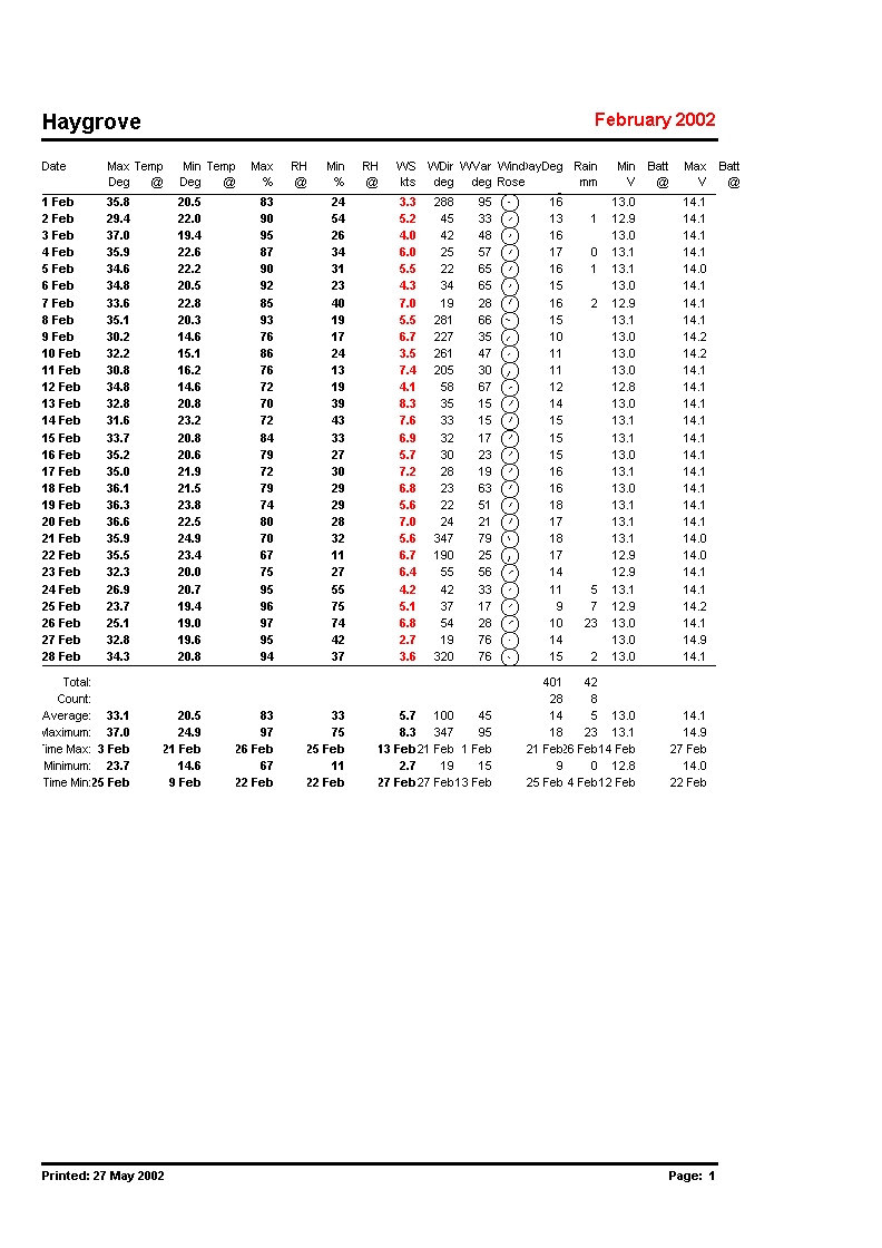 Daily weather summary - the circular symbol is a wind rose.