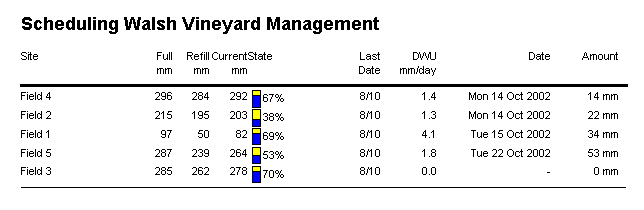 The rate that the moisture in the soil is falling (2.2 mm/day) is used to calculate when the next irrigation is due, and how much water should be applied.