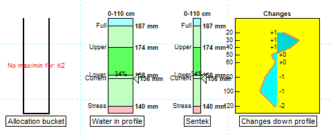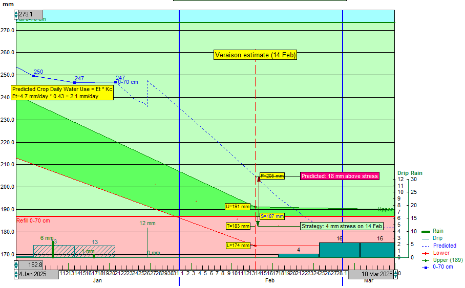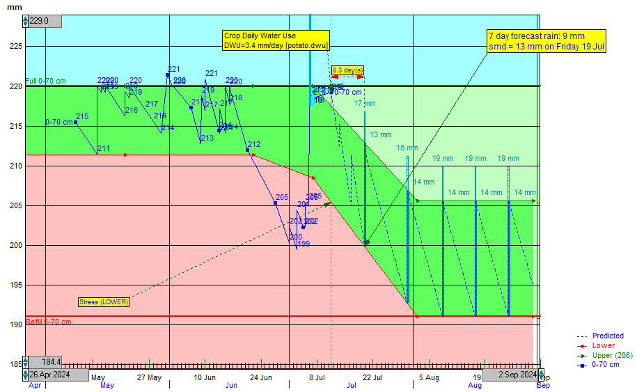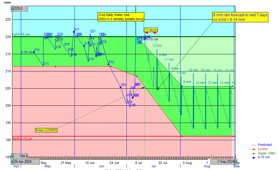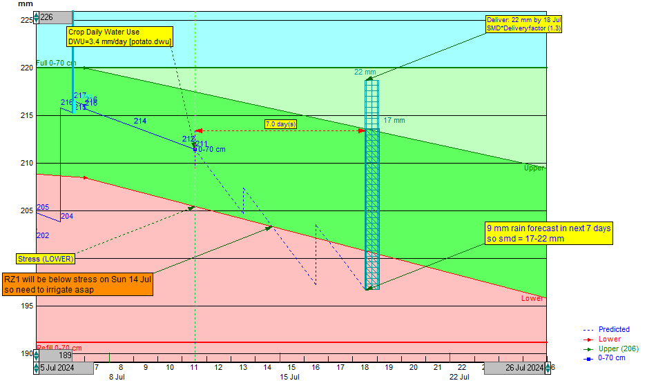 However, because of 12mm forecast rain on 26 June, the predicted RZ1 is P=205 mm - 18 mm above stress.