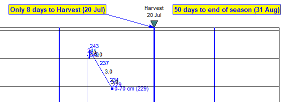 In the example above the grower (potatoes, UK) is being reminded that there is only 8 days to harvest. and that RZ1 is ??mm above target ???