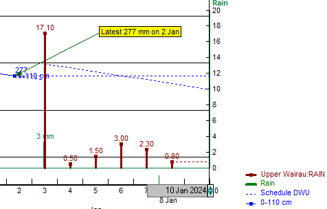As a comparison, Upper Wairu:Rain 17.10, 0.50, 1.50.. mm is the forecast rain for another location.