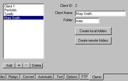 The client name can be any text you like; the folder is the name of the folder relative to the main data folder.