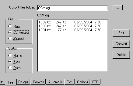 The raw files, the converted files or the zipped files can be displayed, with their date and size. Files can be viewed (or edited), and deleted.