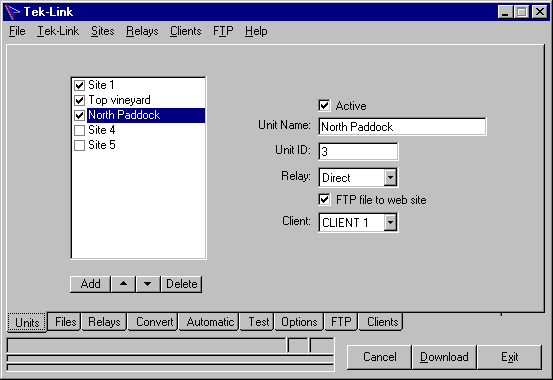 Tek-Link downloads data from Enviropro radio systems, and saves the data in a separate, comma-delimited file for each unit.